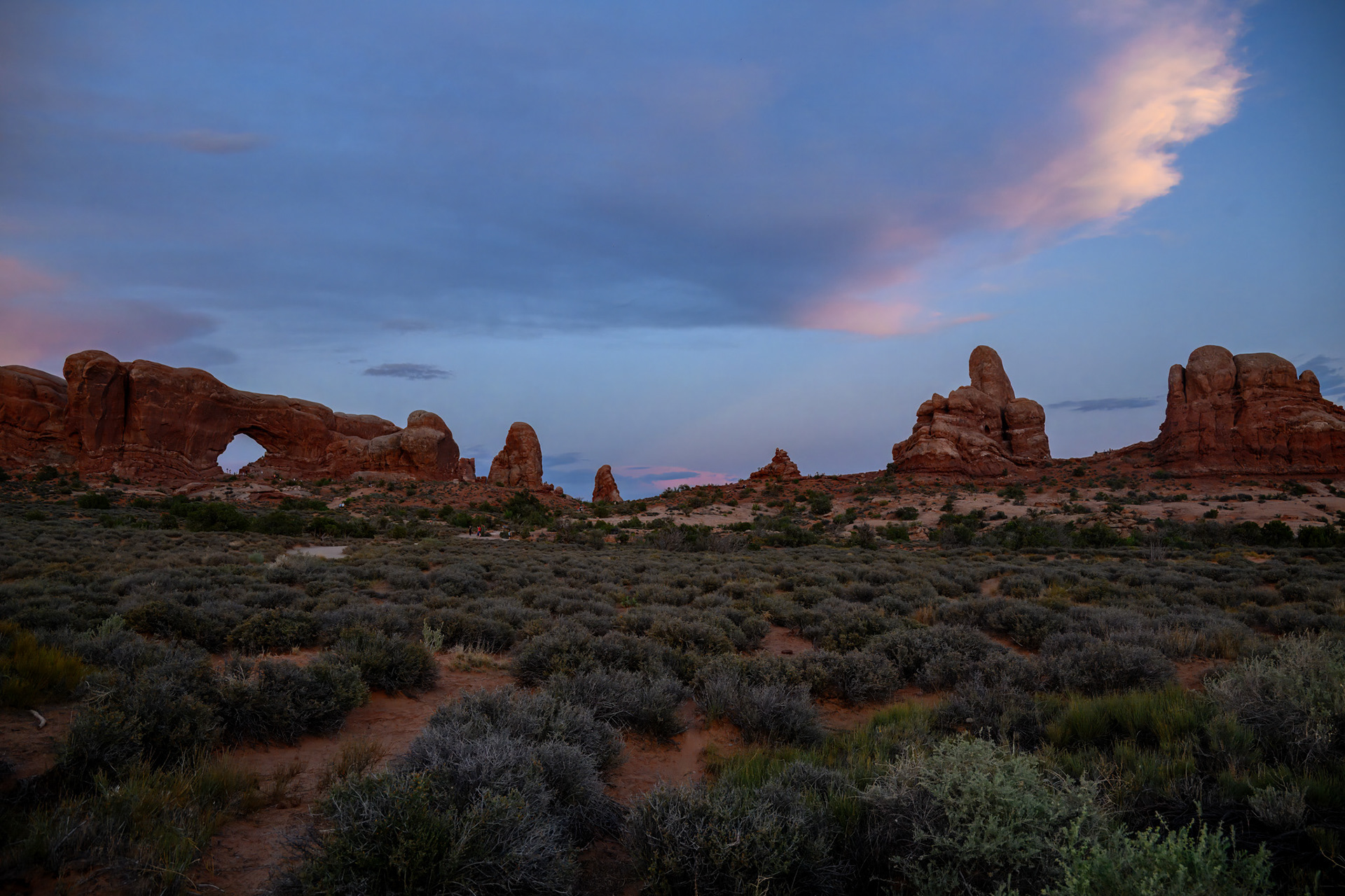 Sunset at the windows area, the park is known for having over 2000 natural stone arches as well as balanced rocks, pinnacles and other unique geological formations.