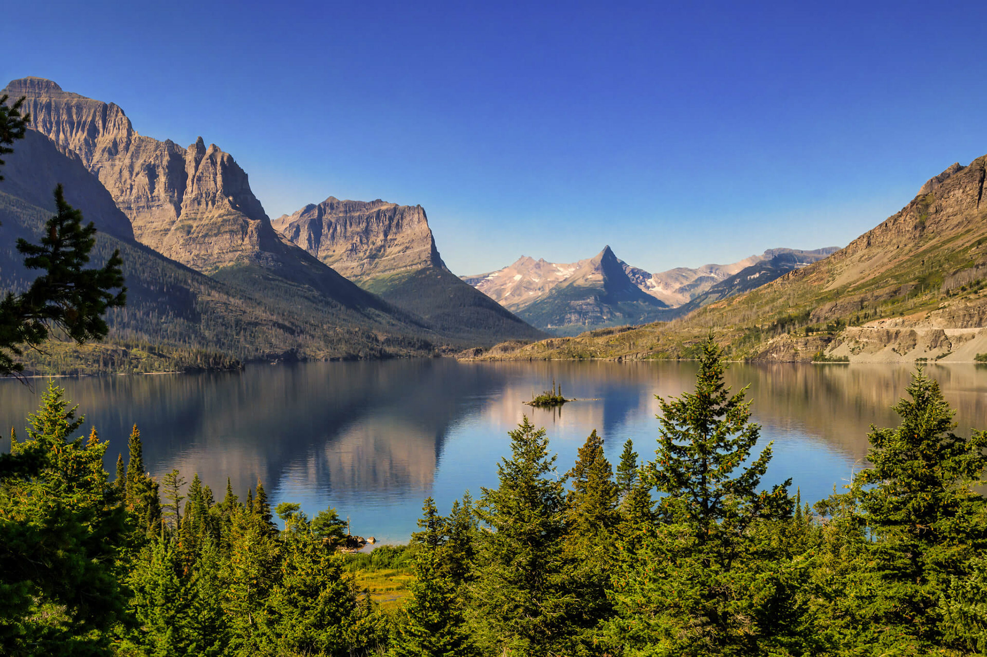 St Mary Lake with Wild Goose Island in the center.
