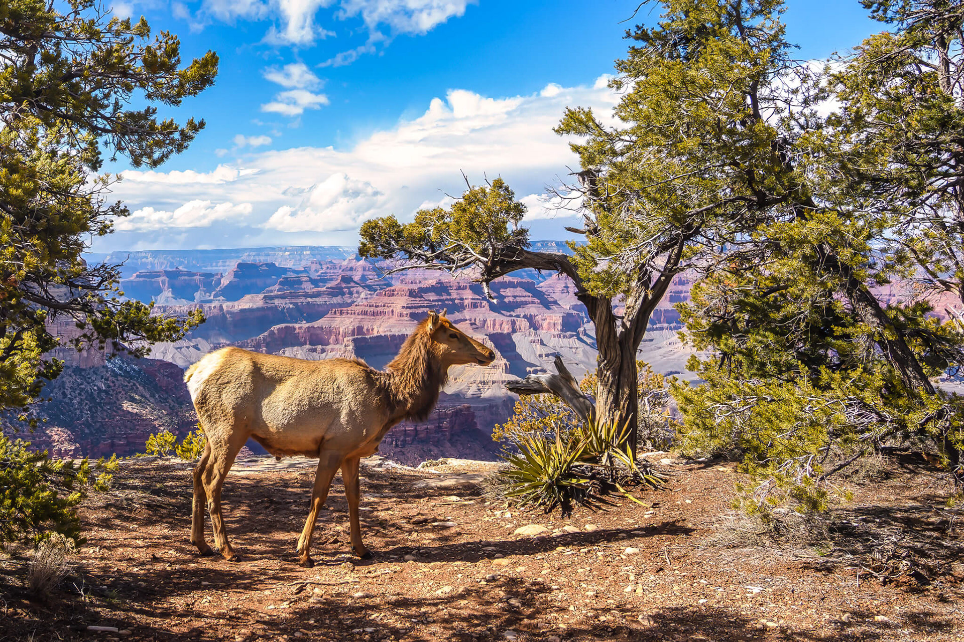 Elk are large members of the deer family, with males called bulls and females called cows. Bulls grow and shed their large antlers every year, and their calls, called bugles, can be heard from far away. They are herbivores that live in herds, are excellent swimmers, and are very active during dawn and dusk.