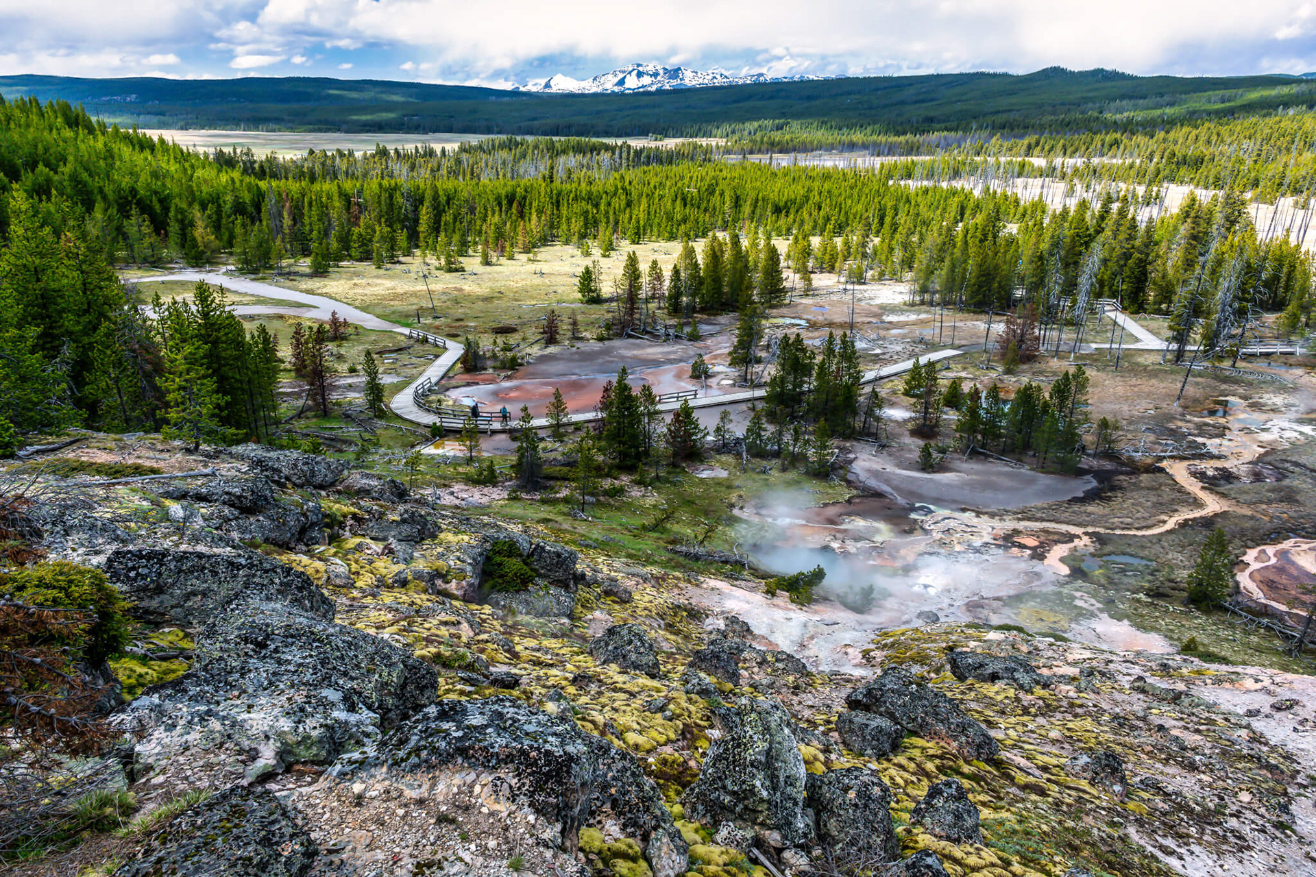 Norris Geyser Basin is the hottest, oldest, and most dynamic of Yellowstone's thermal areas. The area offers a visually stunning and otherworldly experience, with colorful pools and active geysers along well-maintained boardwalks.